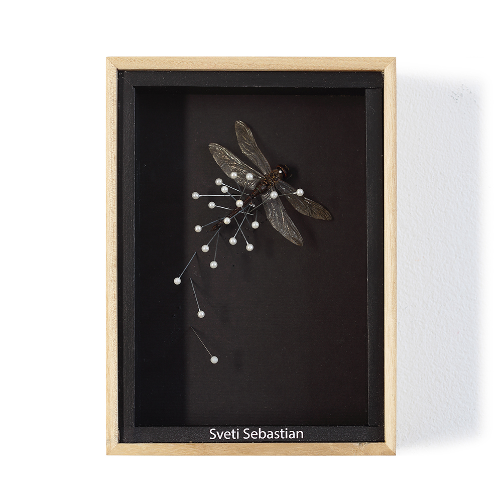 St. Sebastian, 2018. taxidermied dragonfly, metal, wood, 22 x 16 x 6 cm -